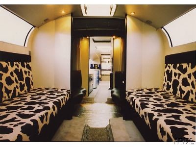 design couch, made of the same leather as the passenger seats. All windows are